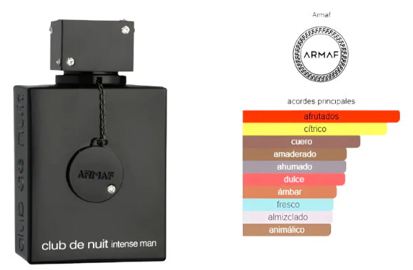 Notas: salida: limón, bergamota, piña, grosellas negras y manzana. Corazón: El núcleo es floral y ahumado, con abedul (que le da el toque ahumado característico), jazmín y rosa. Fondo: Una base masculina y duradera de almizcle, ámbar gris, pachulí y vainilla. Su proyección es potente durante las primeras 2-3 horas y se hace notar. En la piel dura fácilmente más de 10 horas, e incluso puede superar las 12 horas.